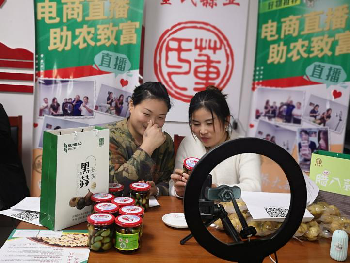 本次年貨節(jié)直播已經(jīng)是東董村2021年春季前的第二次直播了,第一次是1月20日農(nóng)歷臘月初八當(dāng)天,俗話說:“進(jìn)了臘八就是年”,借著農(nóng)歷節(jié)日,臘八蒜正是千家萬戶最應(yīng)景的餐桌佐食。白橋鎮(zhèn)作為全國有名的大蒜之鄉(xiāng),進(jìn)入臘月里,各家各戶就開始忙碌起來,挑蒜、洗蒜、調(diào)醋、封裝等,按照傳統(tǒng)的工藝制作出地道的臘八蒜,除了自己家人食用,其他的主要是在當(dāng)?shù)氐纳痰陻[賣。和往年不同是,今年東董村的臘八蒜增加了電商直播、社群銷售等新興的銷售渠道。