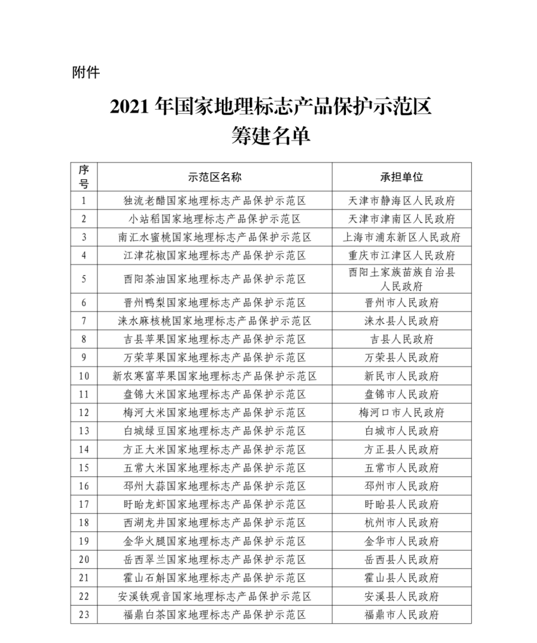 2021年國(guó)家地理標(biāo)志產(chǎn)品保護(hù)示范區(qū)籌建名單來(lái)啦