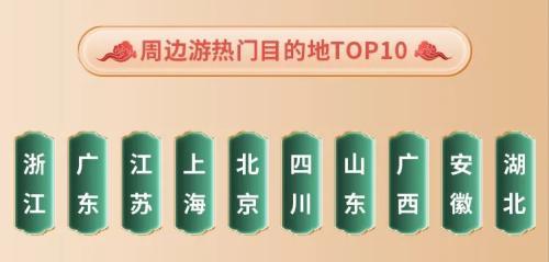 國慶假期長線游占據(jù)主流,仍有不少游客選擇以“微度假”“微旅游”為主的更省心省力的周邊游。途牛旅游網(wǎng)數(shù)據(jù)顯示,浙江、廣東、江蘇、上海、北京、四川、山東、廣西、安徽、湖北位列國慶周邊游熱門目的地前十。