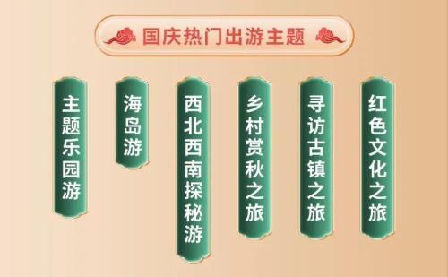 作為國慶出游主力軍的中青年客群,尤為注重出游主題、線路和玩法的創(chuàng)新。在出游主題方面,國慶假期主題樂園游、海島游、西北西南探秘游、鄉(xiāng)村賞秋之旅、尋訪古鎮(zhèn)之旅、紅色文化之旅等備受關(guān)注。
