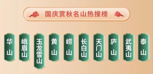 此外,賞秋一直是秋季出游的限定主題。隨著國慶臨近,秋意漸濃,去祖國名山大川打卡正成為國慶“登高望遠(yuǎn)賞秋光”的一大“重頭戲”。華山、峨眉山、玉龍雪山、黃山、嶗山、長白山、天門山、廬山、武夷山、泰山等山川,成為了這個國慶假期賞秋的熱門景點(diǎn)。