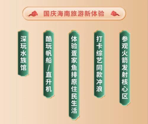 在旅游線路和玩法創(chuàng)新方面,特色地域元素的加入是深化旅游目的地吸引力的重要抓手。以海南為例,基于海南目的地旅游用戶的個性化和多元化的需求,途牛持續(xù)在產(chǎn)品研發(fā)設(shè)計上發(fā)力,不斷在相對成熟的旅游線路中增設(shè)深玩水族館、酷玩帆船/直升機(jī)、體驗(yàn)疍家魚排原住民生活、綜藝同款沖浪、參觀火箭發(fā)射核心區(qū)等深度體驗(yàn)項(xiàng)目。途牛旅游網(wǎng)數(shù)據(jù)顯示,國慶假期,海南“海陸空”一體化即囊括海洋、陸地、天空三個空間維度不同類型體驗(yàn)項(xiàng)目的創(chuàng)意旅游模式吸引了全國大批量游客的咨詢與預(yù)訂。