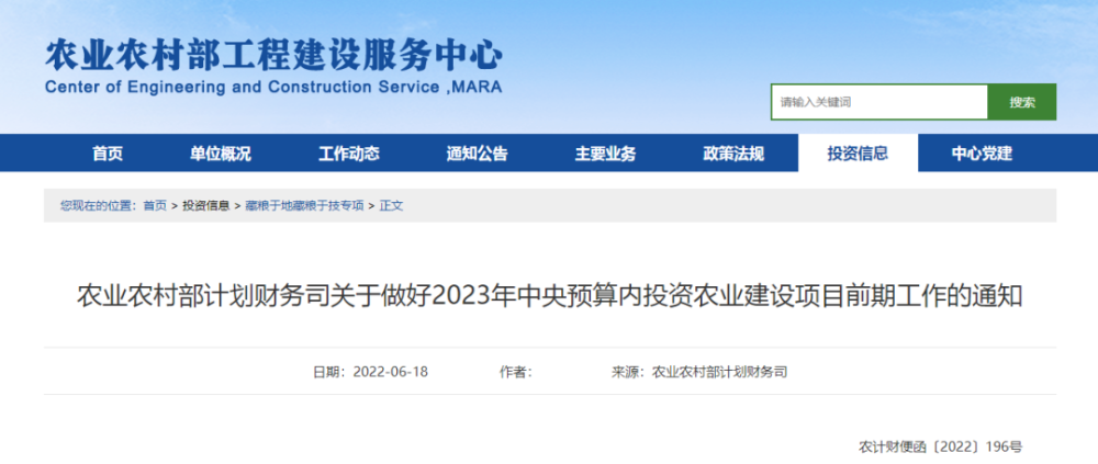 通知:做好2023年中央預(yù)算內(nèi)投資農(nóng)業(yè)建設(shè)項(xiàng)目前期工作