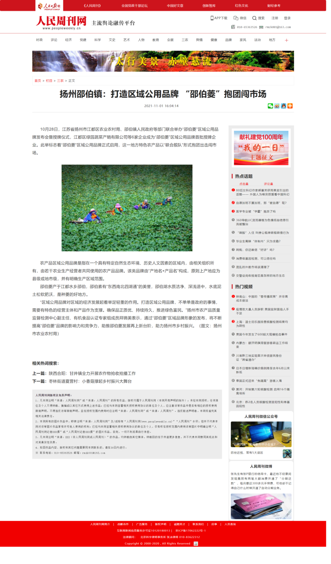 利用媒體資源,聯(lián)合網(wǎng)易、百度、搜狐、新浪等一線網(wǎng)絡媒體、省級媒體并結合“豐收節(jié)”活動進行“邵伯菱”區(qū)域公用品牌形象的發(fā)布。