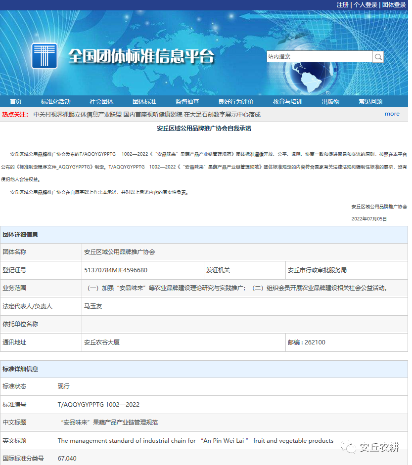 安丘三項(xiàng)團(tuán)體標(biāo)準(zhǔn)在國(guó)家級(jí)平臺(tái)發(fā)布!