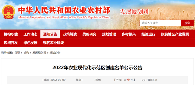 100個(gè)!2022年農(nóng)業(yè)現(xiàn)代化示范區(qū)創(chuàng)建名單公示!