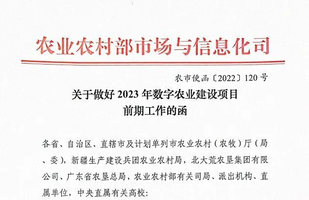 關(guān)于做好2023年數(shù)字農(nóng)業(yè)建設(shè)項目前期工作的函.pdf