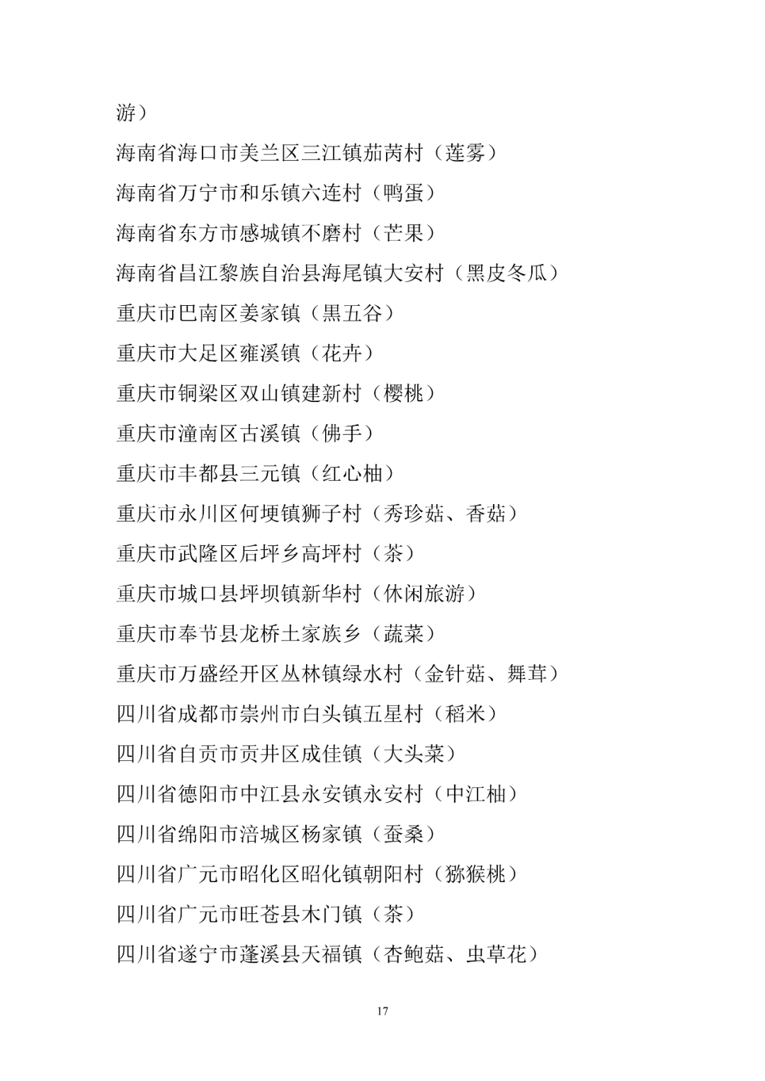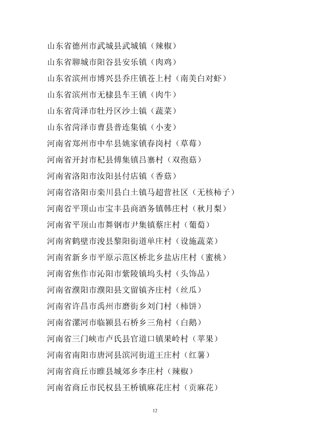 附件:第十二批全國(guó)“一村一品”示范村鎮(zhèn)名單