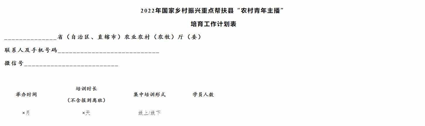 2.2022年國家鄉(xiāng)村振興重點幫扶縣“農(nóng)村青年主播 ”培育工作計劃表