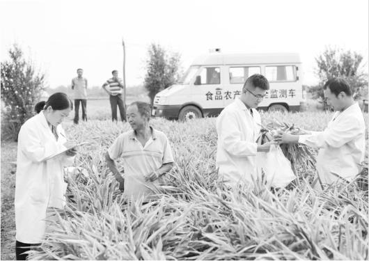 安丘市以出口標(biāo)準(zhǔn)倒逼農(nóng)業(yè)生產(chǎn)提質(zhì)升級(jí),圖為工作人員到農(nóng)產(chǎn)品生產(chǎn)基地進(jìn)行檢測。 (資料片)
