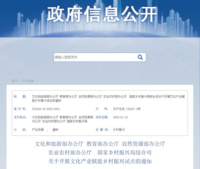 文化和旅游部辦公廳 教育部辦公廳自然資源部辦公廳 農(nóng)業(yè)農(nóng)村部辦公廳國家鄉(xiāng)村振興局綜合司關(guān)于開展文化產(chǎn)業(yè)賦能鄉(xiāng)村振興試點的通知