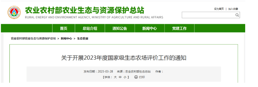 【項(xiàng)目申報(bào)】重磅!2023年度國(guó)家級(jí)生態(tài)農(nóng)場(chǎng)評(píng)價(jià)工作開始 2023-04-03 16:18