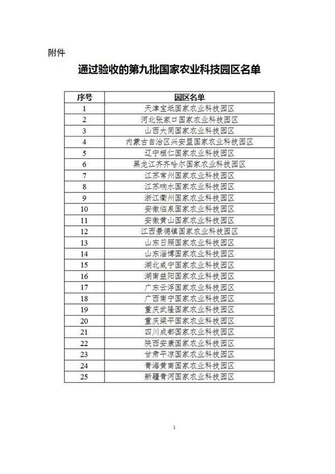 附件:通過驗收的第九批國家農業(yè)科技園區(qū)名單