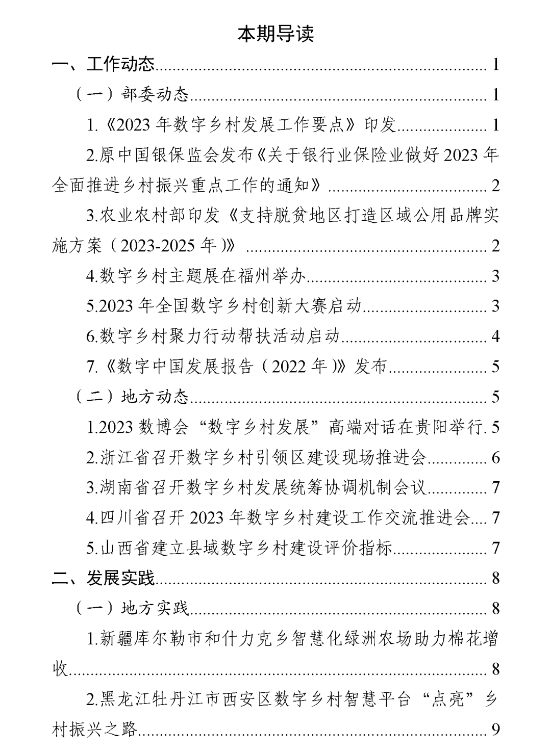 1. 《2023年數(shù)字鄉(xiāng)村發(fā)展工作要點》印發(fā)
