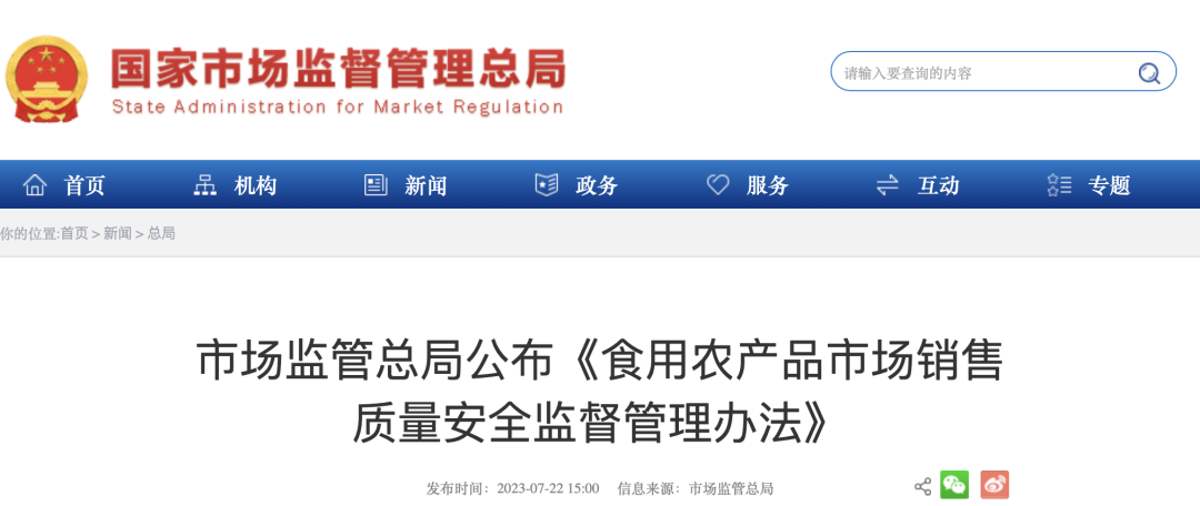 為了規(guī)范食用農(nóng)產(chǎn)品市場銷售行為,加強(qiáng)食用農(nóng)產(chǎn)品市場銷售質(zhì)量安全監(jiān)督管理,市場監(jiān)管總局修訂發(fā)布了《食用農(nóng)產(chǎn)品市場銷售質(zhì)量安全監(jiān)督管理辦法》(國家市場監(jiān)督管理總局令第81號(hào),以下簡稱《辦法》)?,F(xiàn)就《辦法》相關(guān)內(nèi)容解讀如下: